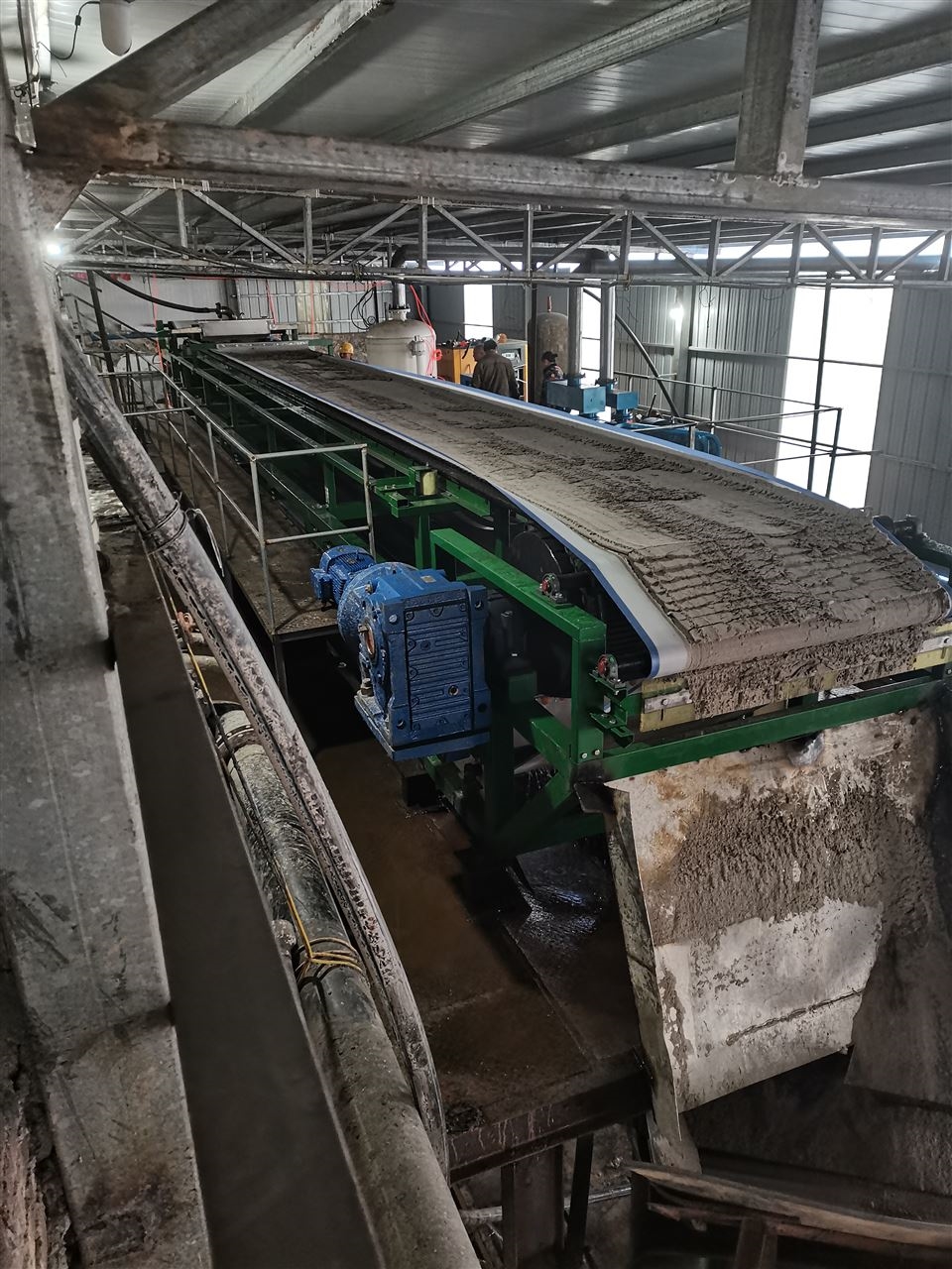随着胶带的连续运行,滤饼依次进入洗涤区和吸干区,经冲洗管冲洗并进一步脱水,降低含水率。